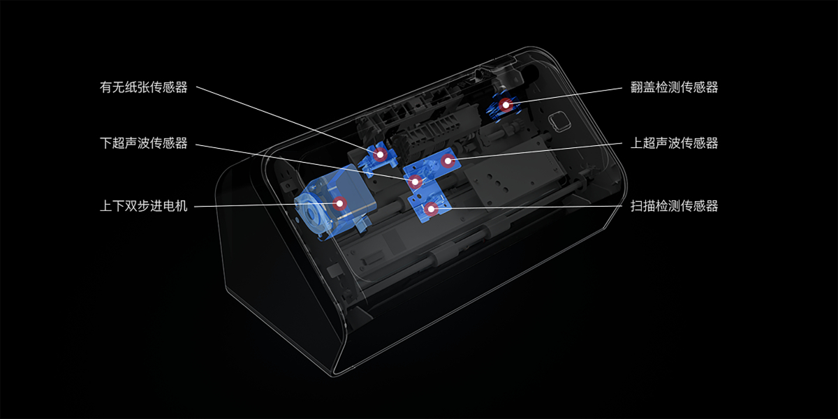 適應紙路結構的白色雙光源,特定出光角度設計,確保成像均勻性;MTF≥30%